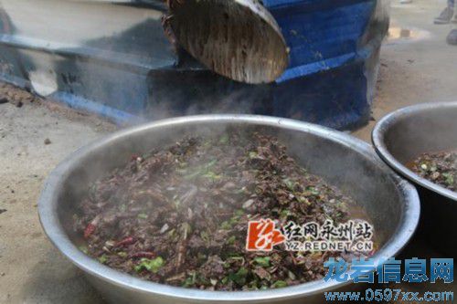 上午11時(shí),在眾多大廚的齊心協(xié)力下,重300余斤的永州血鴨在零陵區(qū)神仙嶺路順利出鍋,輕煙裊裊,縈蕩心頭,有說(shuō)不盡的痛快淋漓,引得眾人一片歡呼,數(shù)千市民紛紛前來(lái)品嘗。