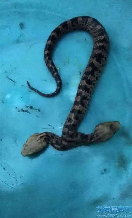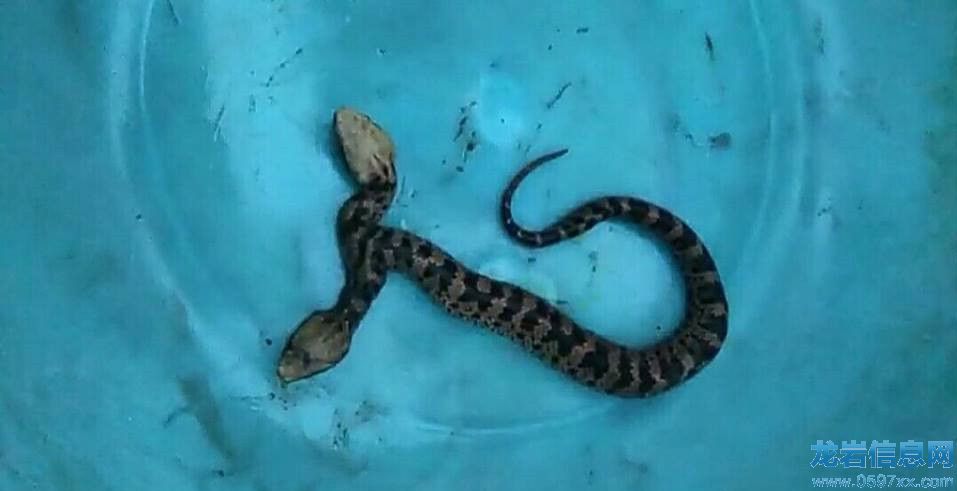 近日,在云南省鎮雄縣一個村民的院子里發現了一條兩頭蛇。據鎮雄縣林業局野保站技術人員分析,這條雙頭蛇是一種較為罕見的變異蛇和畸形蛇,形成原因主要是蛇本身控制頭部的基因不穩定并發生變異,或者因過量使用農藥、化肥等造成外界環境污染,進而使一卵雙胎的蛇產生基因突變后形成畸形胎。這種雙頭蛇存活時間一般為5天到7天。