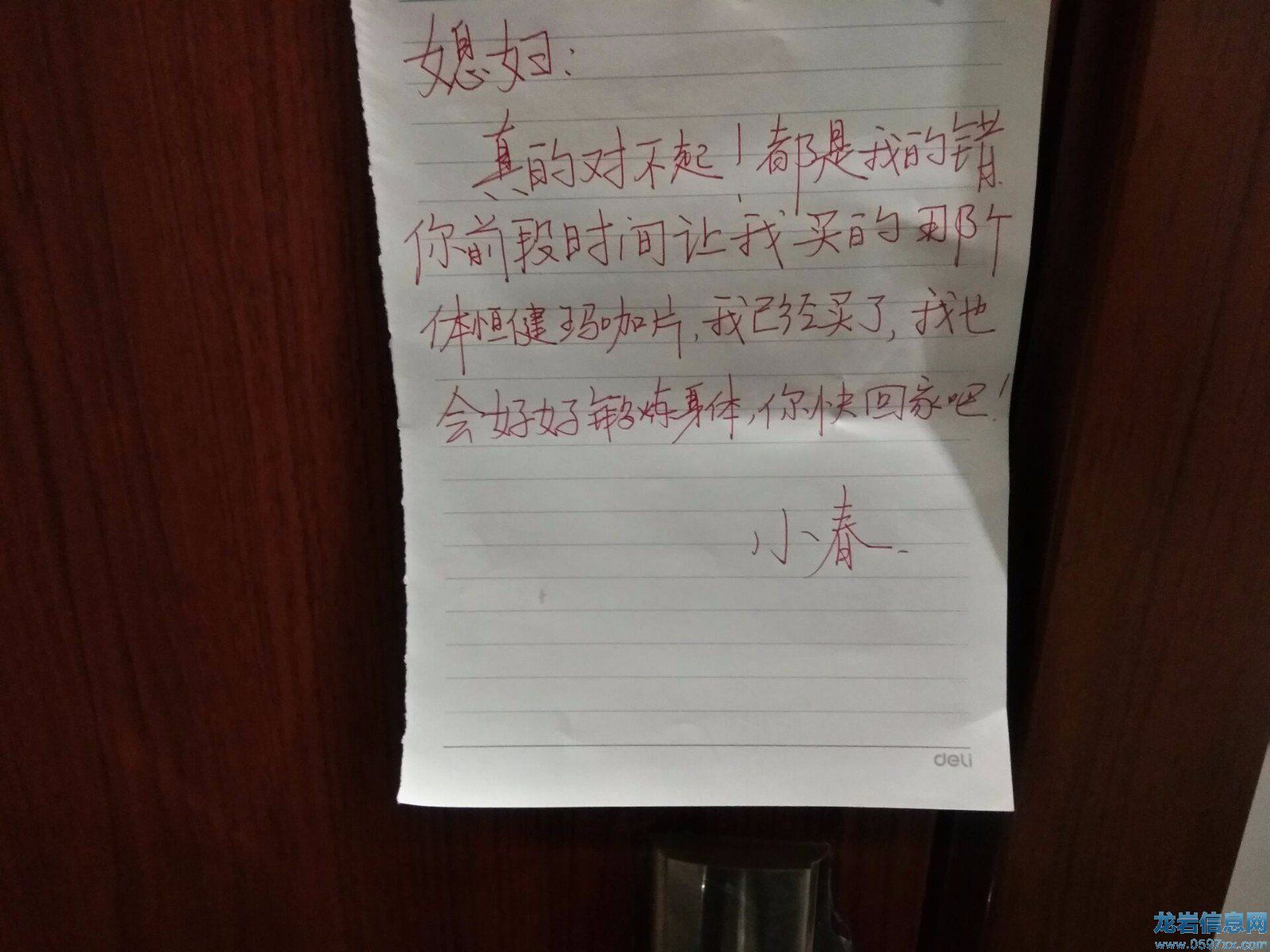 2017年7月20日,上午10時,記者前往江西武寧縣的一棟樓,發現男子苦苦守在岳父家的門前,并把一張紙貼在岳父家的大門上。
