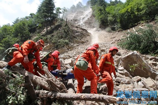 在122林場,被困人員中有30多人受傷,其中8名重傷員。武警官兵決定先把重傷員運送出去?逅纳襟w和樹木幾乎將道路全部攔斷,與之相伴的還有不斷滾落的碎石,還有落在路中央1米多高的巨石。