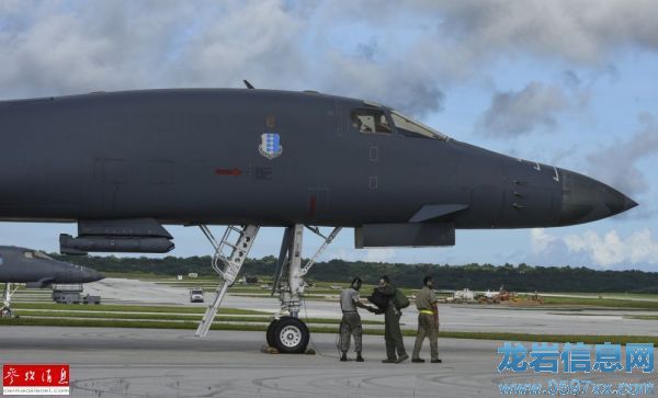 圖為美軍B-1B戰略轟炸機飛抵安德森空軍基地后進行技術檢查