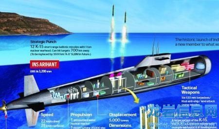 “殲敵者”號核潛艇下水。讓印度成為世界上第6個能夠獨立建造核潛艇的國家。“殲敵者”號核潛艇由一個核反應(yīng)堆提供動力,可配備12枚最大射程1900公里的彈道導(dǎo)彈,或者4枚射程3500公里的彈道導(dǎo)彈。現(xiàn)在,印度已擁有可攜帶核彈頭的戰(zhàn)斗機(jī)和導(dǎo)彈。使印度海軍具備對1000公里外目標(biāo)的有限核威懾能力。