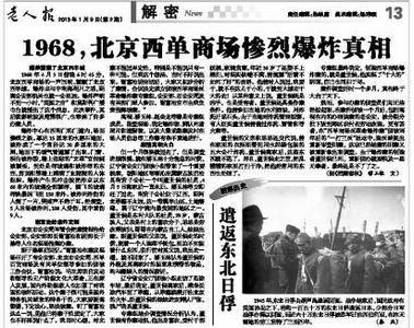 本文來源:《老人報》2013年1月9日A13版,作者:穆玉敏,原題:《1968,北京西單商場慘烈爆炸真相》
