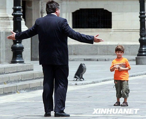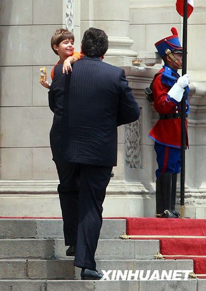 新華網2月19日報道 2月18日,秘魯總統阿蘭·加西亞在利馬總統府迎接其私生子。當天,阿蘭·加西亞與已滿3歲的私生子首次在總統府大院里公開露面,引起當地媒體和民眾的廣泛關注。