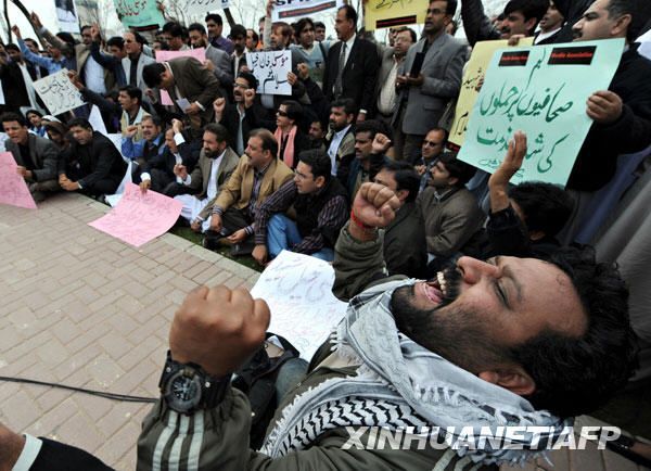 新華網2月20日報道2月19日,在巴基斯坦伊斯蘭堡,數百名記者參加抗議活動,聲討殺害穆薩·汗·克爾的兇手。
