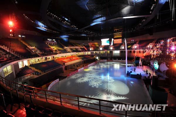 新華網(wǎng)2月21日電 承辦第十一屆全國運動會冰上項目的青島國信體育館——“鉆石”體育館落成典禮將于明晚舉行。“鉆石”體育館內面積達1800平方米的移動冰場已完成全部澆灌工作。根據(jù)日程安排,3月13日“鉆石”體育館將承辦十一運會短道速滑測試賽,4月初接連承辦十一運會短道速滑和花樣滑冰比賽。5月至10月之間,該體育館還將陸續(xù)承辦羽毛球預決賽及乒乓球決賽。據(jù)悉,由于“鉆石”體育館內的冰帶可以移動,僅需一星期,便可完成由承辦冰上項目到其它項目的轉換。新華社記者李紫恒攝