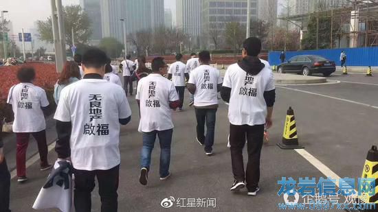 從昨天上午開始,媒體人的朋友圈里就開始流傳多張鄭州電視臺的職工們沿著市中心鄭東新區CBD附近的大街上行進,表達抗議的照片,大家都穿著統一的白色T恤,上面印著大大的“記者也要維權”/“無良地產啟福”等黑色字體。據了解,這次抗議進行了一上午,參與者在街頭展示了橫幅,集體穿著T恤走了一會后便解散了。
