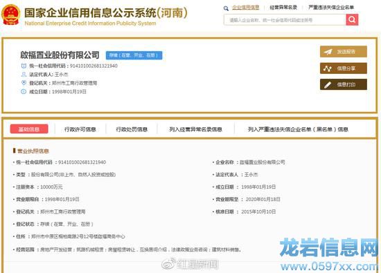 紅星新聞記者查閱了啟福置業股份有限公司的工商注冊信息,該公司注冊資本共1億元,其中一位股東盧一博占9900萬元,另一位股東盧福明占100萬元。根據公開資料,盧一博今年35歲,是公司董事長盧福明之子,身兼河南省政協委員、鄭州市慈善總會副會長。
