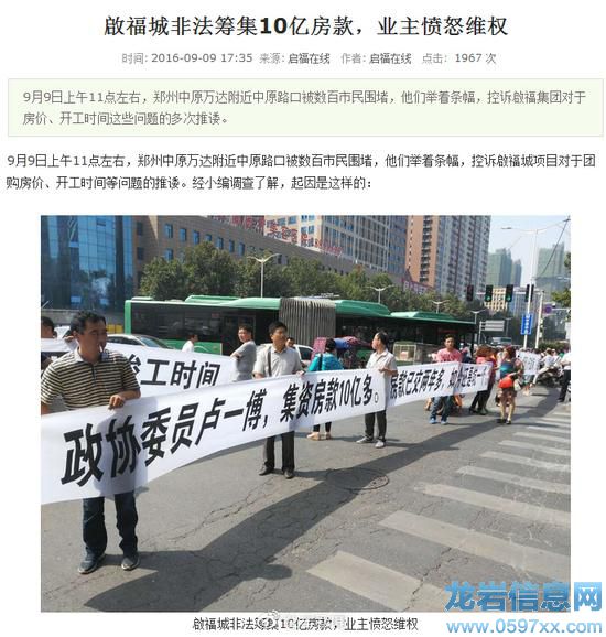事實上,在鄭州電視臺職工這次上街抗議之前,網上已經多次曝光其他團購了啟福城房子的業主上街公開維權。