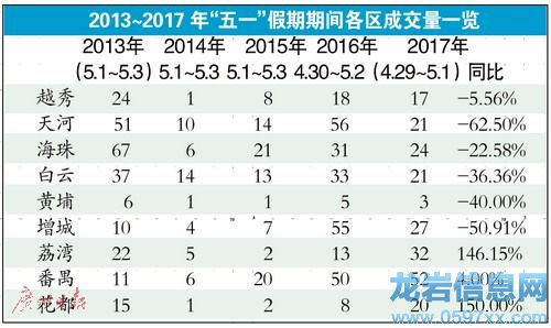 據廣州中原監測,番禺、花都今年"五一"分別成交52宗、20宗,同比去年同期均提升4%~6%左右。其中,番禺因7號線一期開通,加上華南板塊、鐘村板塊、市橋板塊等一手項目在售不多,致使整體成交較去年活躍;花都因一手開盤項目不多,加上二手盤源充足,今年"五一"二手成交較為活躍,共成交20宗,整體成交量與白云、天河等中心區相當。