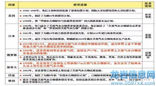 全球主要國家在可燃冰方面的研究進展。截圖自中國地質(zhì)調(diào)查局官網(wǎng)。