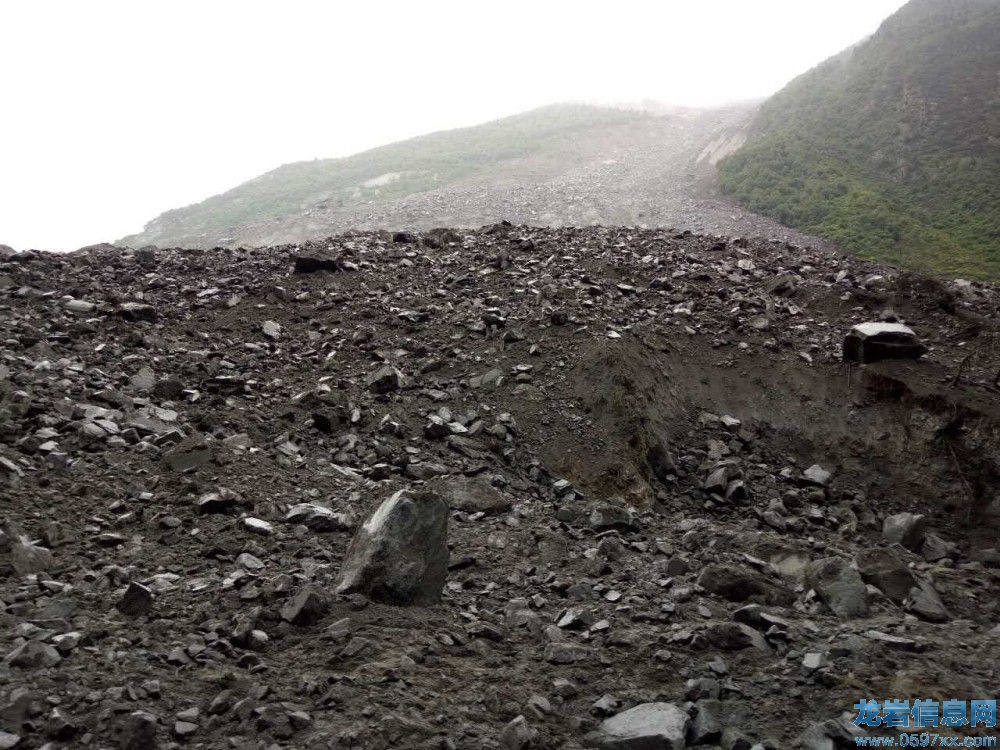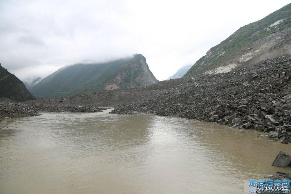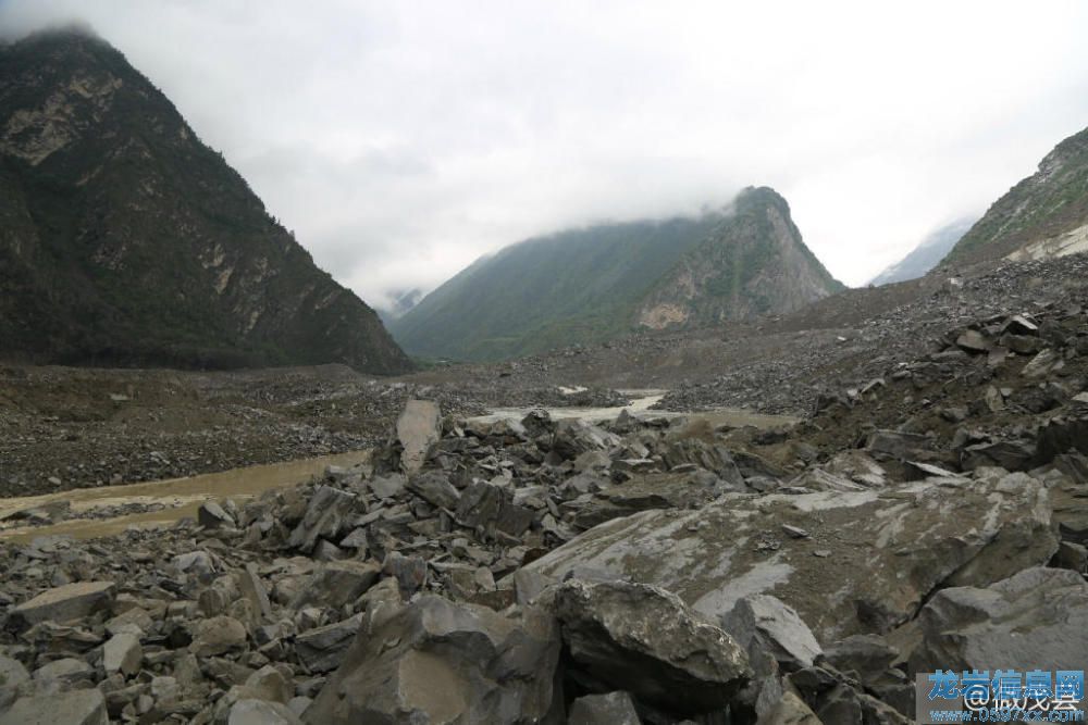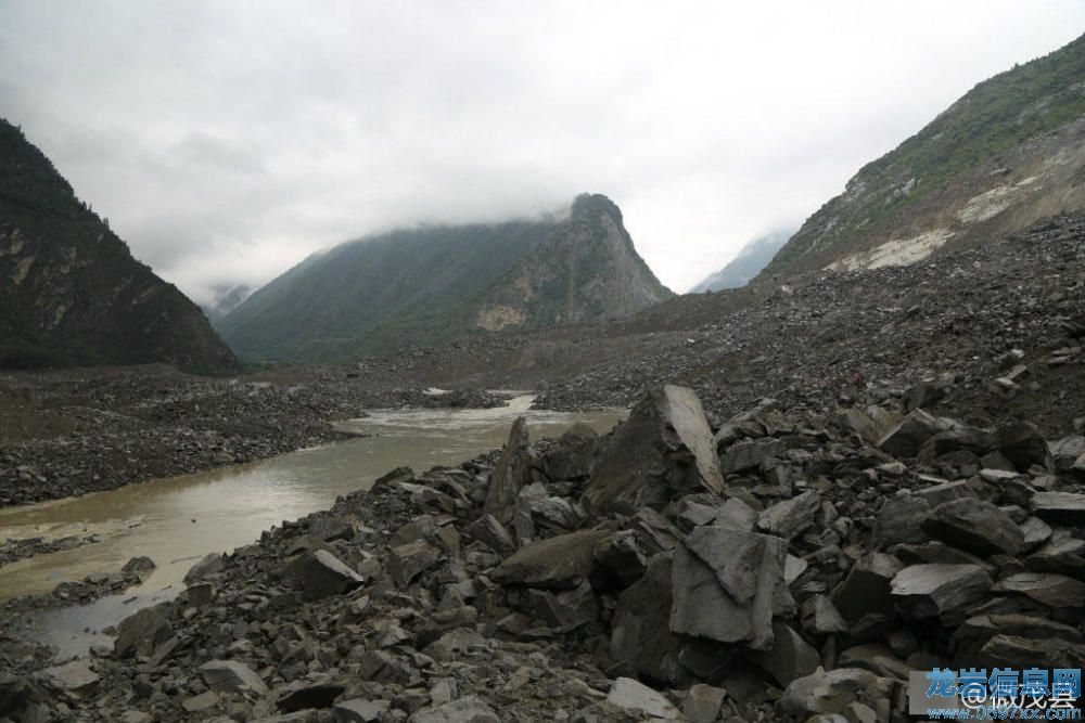 滑坡現(xiàn)場(chǎng),碎石阻擋河道。
