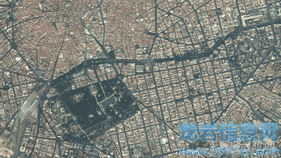 快看!圖片下方中部,一個小白點往右上方飛去。這就是衛(wèi)星拍到飛機從馬德里機場上掠過的畫面。