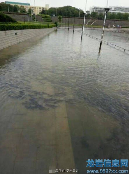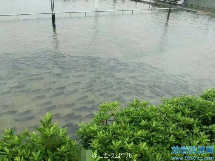 6月26日報道,近日,南昌大學正氣廣場河邊由于雨天漲水,把昔日的廣場路淹沒,魚竟然浮游到岸邊。圖文:江西校園事兒